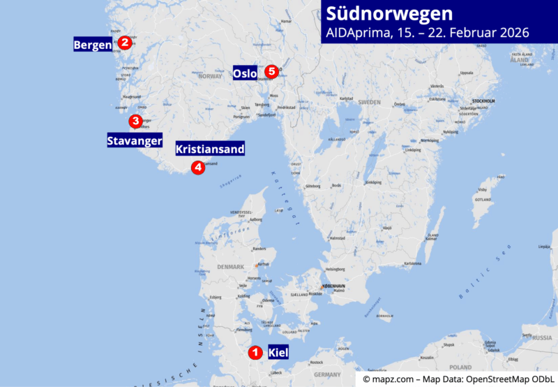 Kreuzfahrt, 15.02. – 22.02.2026 | Die Wintertour von/bis Kiel zu den norwegischen Metropolen Bergen – der Fjordhauptsadt, Stavanger – der Ölhauptstadt, Kristiansand – der Skagerrak-Hauptstadt und Oslo – der Hauptstadt des Königreichs