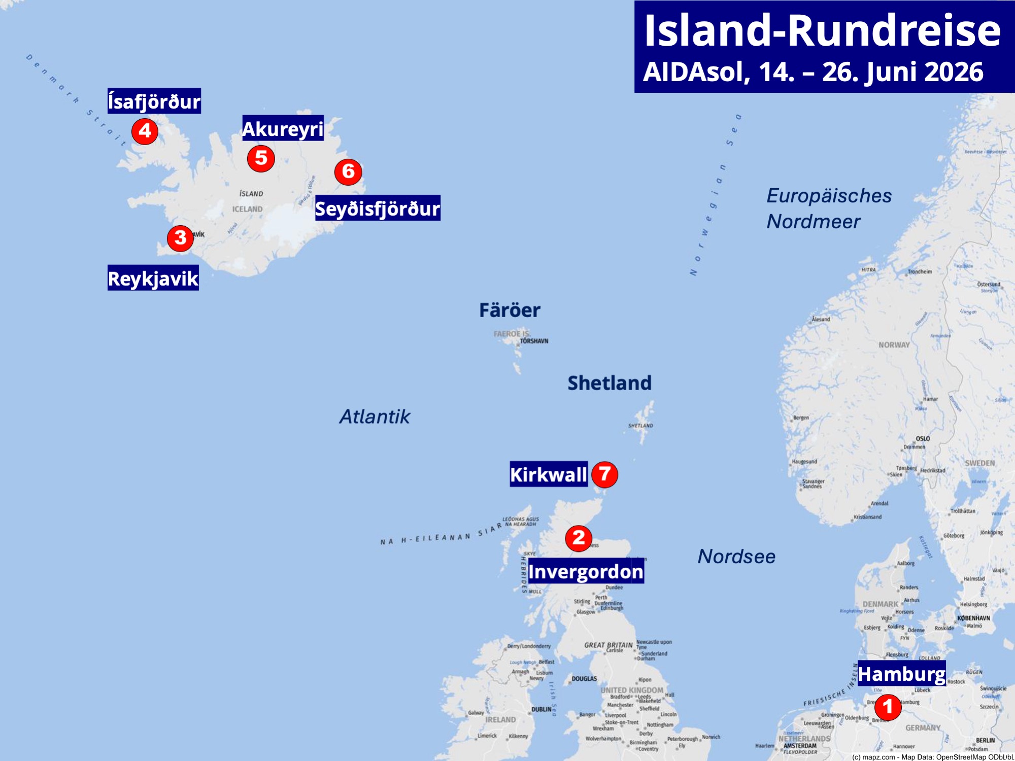| Sa 20.06.26 | Isafjördur, Island | 08:00 | 16:00 |
