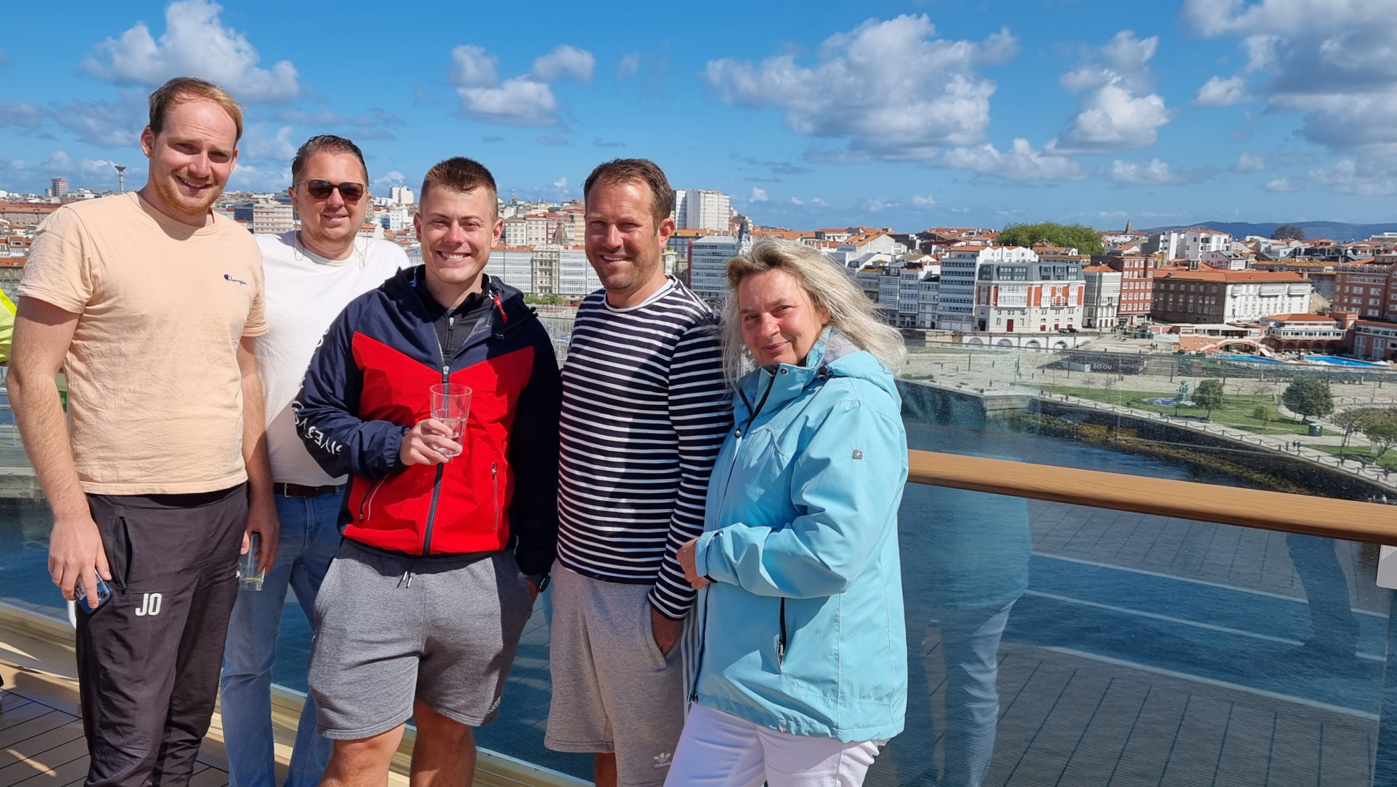 Inge mit lieben Gästen beim Auslaufen aus A Coruña mit Mein Schiff 3